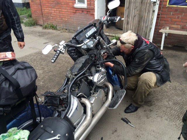 На сегодняшний день в компании едет пять мотоциклов и машина сопровождения.